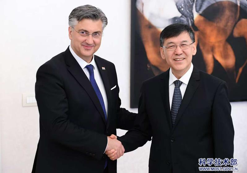 5月23日,阴和俊部长应邀拜会克罗地亚总理普连科维奇,就推动中克科技合作深入交换意见。