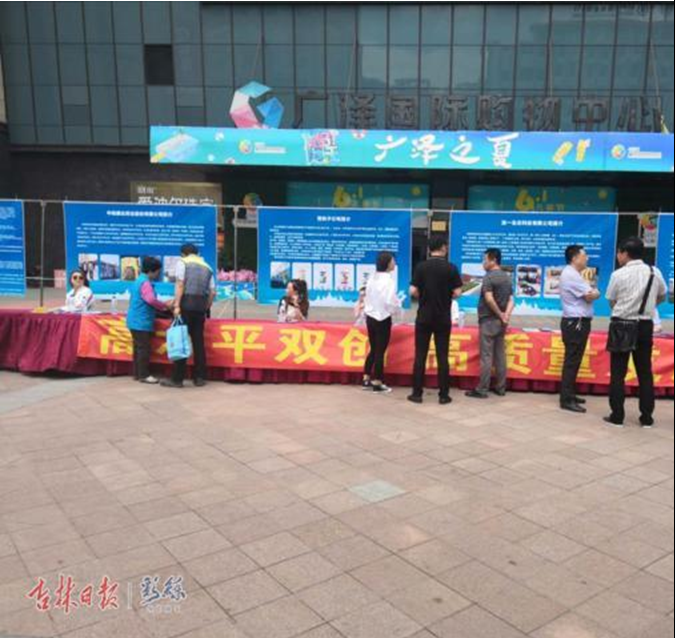 白山市人力资源和社会保障局通过在广泽正门广场摆放展板,集中展示白山市各大科技型企业成果。并安排15名工作人员发放传单、手册500余份,为市民讲解就业、社保、贷款等政策。为本次“双创”活动,起到了良好的推动效果。